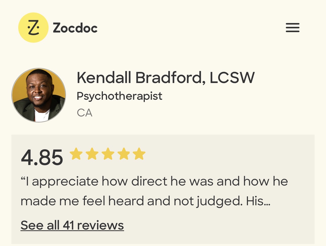 Kendall Bradford, LCSW has a online and offline presence that is consistent, professional and trusting.